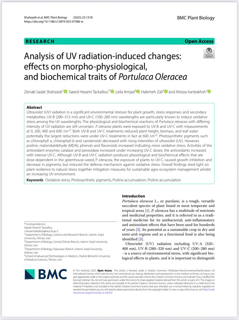 analysis of UV radiation-induced changes: effects on morpho-physiologi...